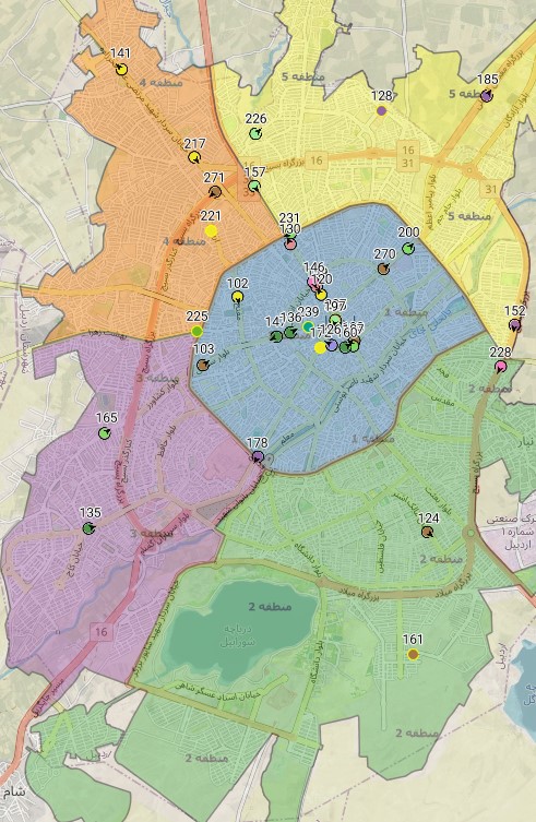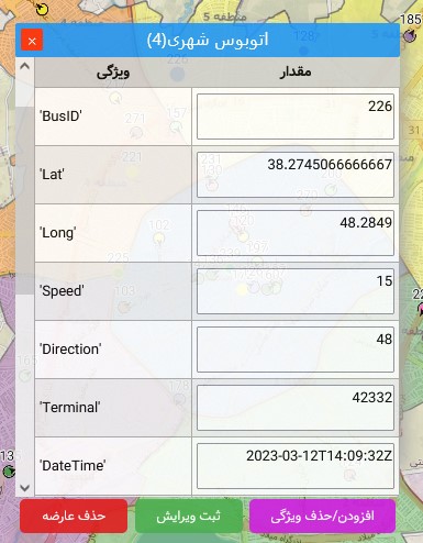 - رنگ بندی بر اساس فیلد اطلاعاتی دلخواه مثلا: نمایش اتوبوس های هر خط با یک رنگ
