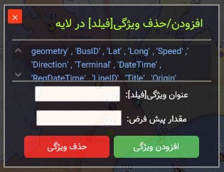 با استفاده از این گزینه و از کادر مد نظر می توان یکی از لایه های سازمانی را برای دسترسی و مدیریت اطلاعات توصیفی انتخاب کرد. با انتخاب لایه، نام فیلدهای اطلاعاتی و جنس فیلدها در کادر مشخص لیست میگردد. و امکانات زیر ظاهر خواهد شد: